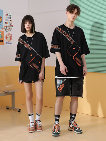 - Alphabet Mark Graffiti Print Contrast Flip Bag Drop Shoulder Sleeves Pure Cotton T-shirt (C1717)