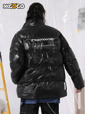 I personally like this black glossy down jacket, which is very suitable for daily work, leisure and entertainment after work, or outdoor play. Wearing black is not easy to get dirty, and the design of this down jacket is fashionable and warm, making it a great choice for winter.