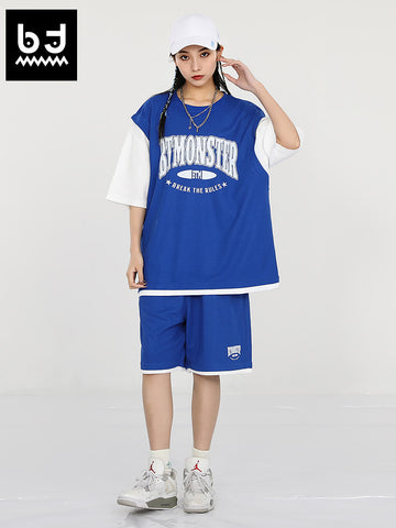 Eg: American streetwear printed waffle fake two-piece tank top patchwork T-shirt (TC363Y3F5)