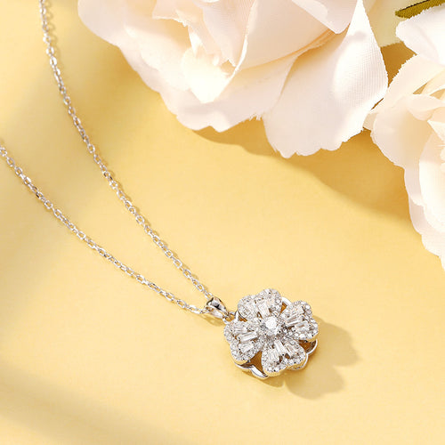 XXOFF 360-Degree Rotating 925 Sterling Silver Four-Leaf Clover Lucky Necklace Gift