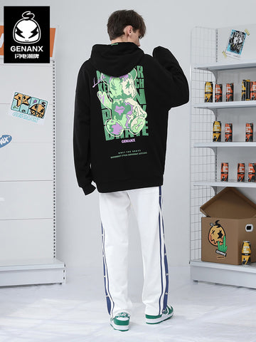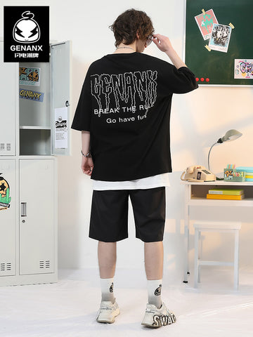 Eg: Lightning Lord Letter Graffiti Print Round Neck Drop Shoulder Sleeves Pure Cotton T-shirt (C1422)